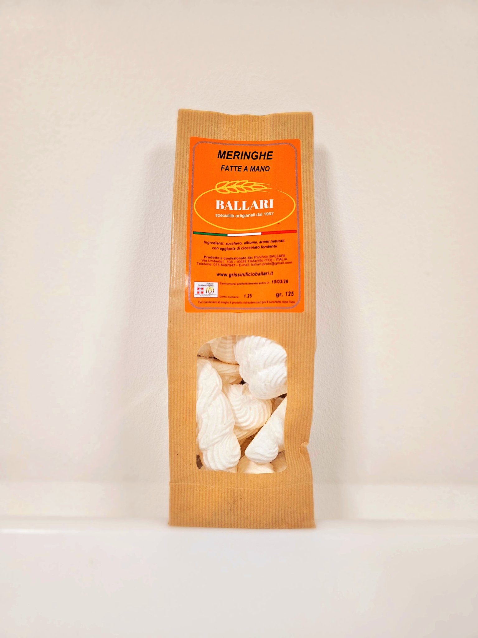 Le meringhe artigianali sono piccole nuvole di dolcezza, leggere e delicate, realizzate secondo lavorazione tradizionale con la sac à poche. Croccanti all’esterno e piacevolmente friabili al morso, si sciolgono lentamente in bocca regalando una dolcezza fine ed elegante.