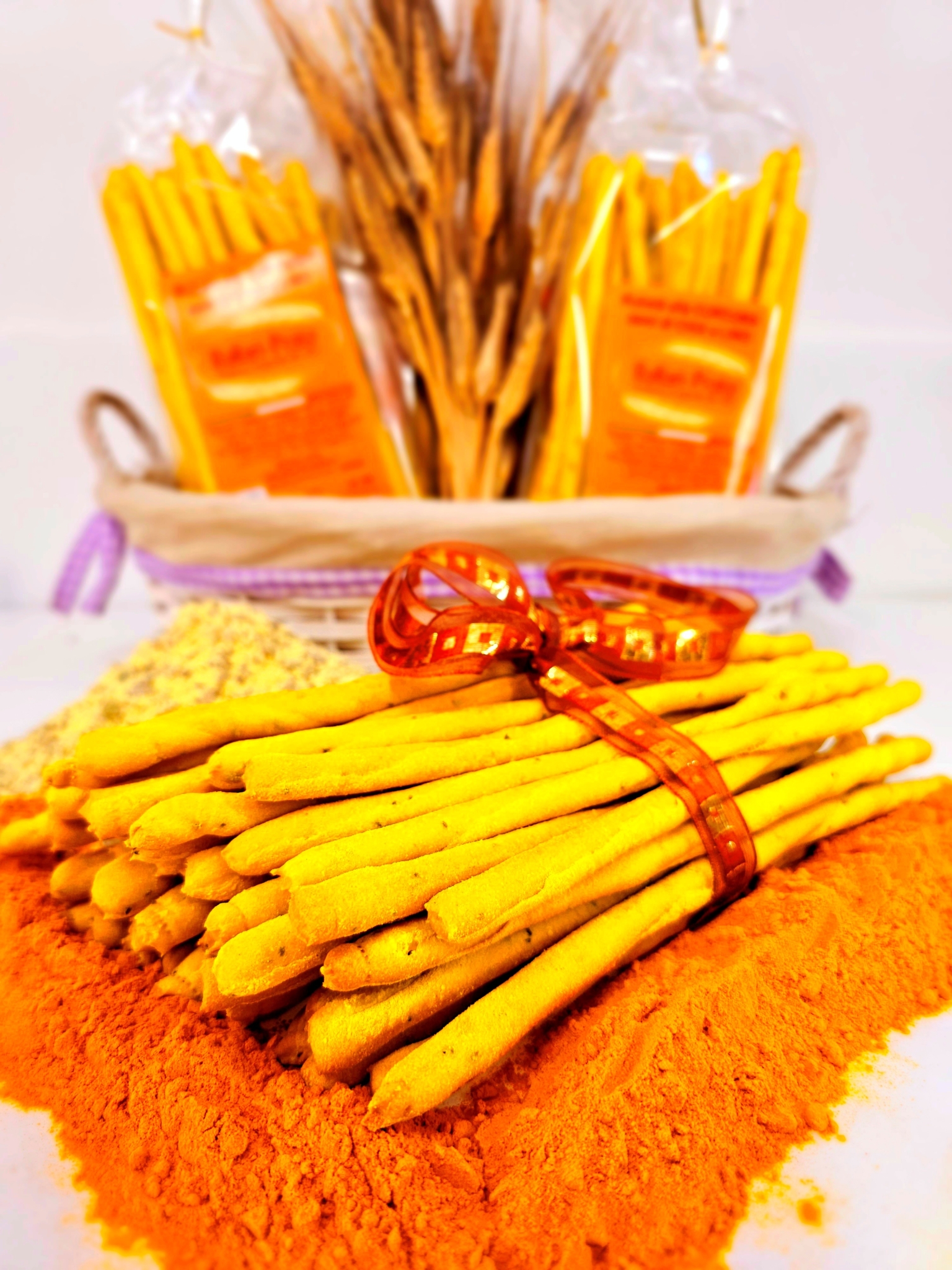 La curcuma dona un naturale colore dorato e una nota speziata delicata, mentre i semi di chia e i semi di lino arricchiscono l’impasto con una texture rustica e un sapore equilibrato. Il risultato è un grissino genuino, profumato e irresistibile, perfetto per chi cerca ancora la qualità artigianale e l’autenticità, senza compromessi.