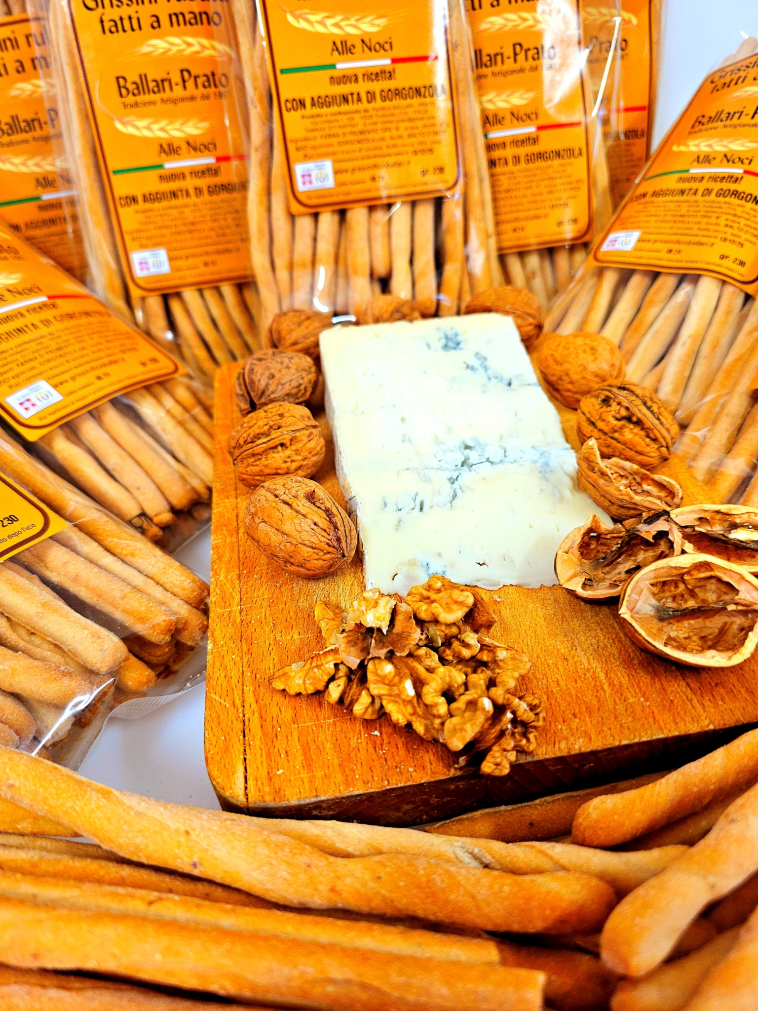 Ingredienti: Farina di frumento tipo “0”, acqua, strutto, noci sgusciate, gorgonzola, sale, lievito, malto d’orzo.
